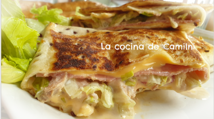 En verano en las cenas solo apetecen platos sin complicaciones y que no nos lleve mucho tiempo hacerlos. A los de casa les gusta mucho pero tostados mas que fríos; es por ello que os enseño el que más se hace en casa. La forma de cerrar el wraps hace que nos recuerde a un sandwich. Vamos con la receta:
